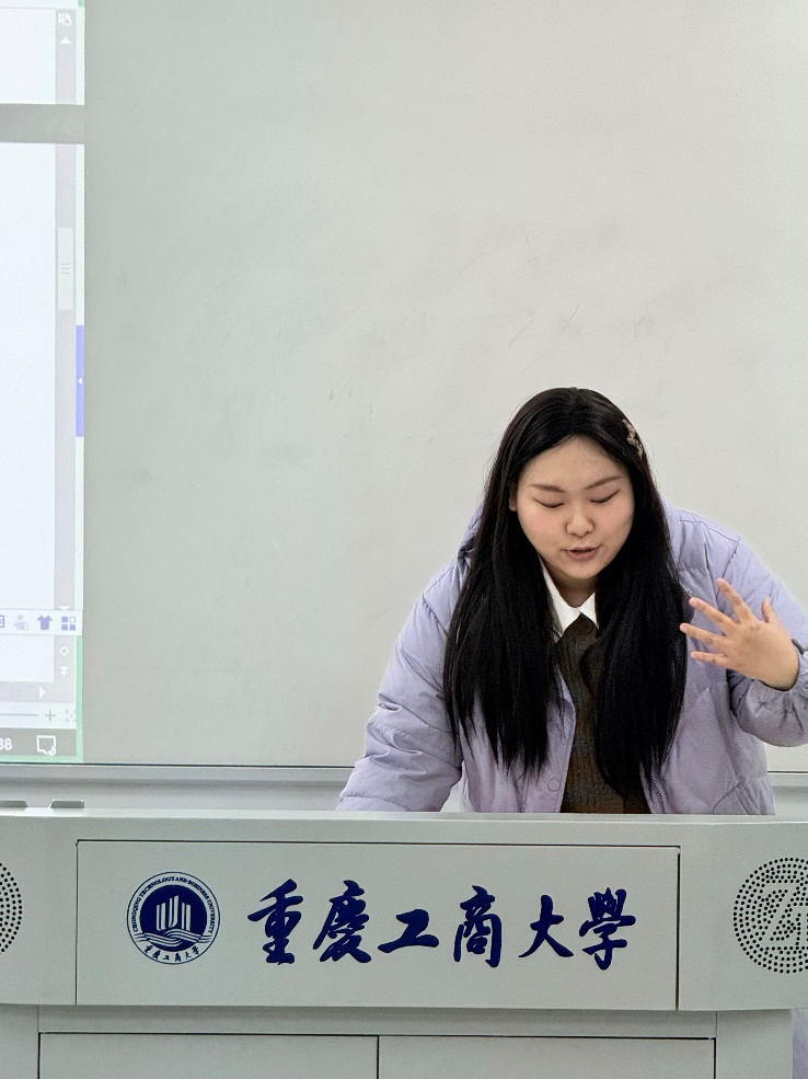 在专题分享环节,获奖团队三位代表依次分享了参赛经验,为课程提供了鲜活的实战案例与方法指导。刘瑞瑶同学以“书写‘一带一路’答卷,助力赛钢涅槃重生——塞尔维亚钢铁厂绿色转型之路”为例,深入解析了案例选题策略与命题优化技巧,展示了如何将时代议题有效融入工程管理案例构建,提升了同学们对选题方向与现实结合点的把握能力。张雪莹同学则聚焦于作品结构搭建与核心内容撰写,从逻辑结构、分析框架到文字表达,系统梳理了高质量竞赛作品的构建路径,增强了员工在案例写作过程中的条理性与表达力。胡欣同学围绕多媒体呈现,介绍了视频制作的流程与实用技术,并结合自身参赛作品的复盘经验,提出具体优化建议,拓展了课堂教学在成果呈现与表达形式上的应用空间。