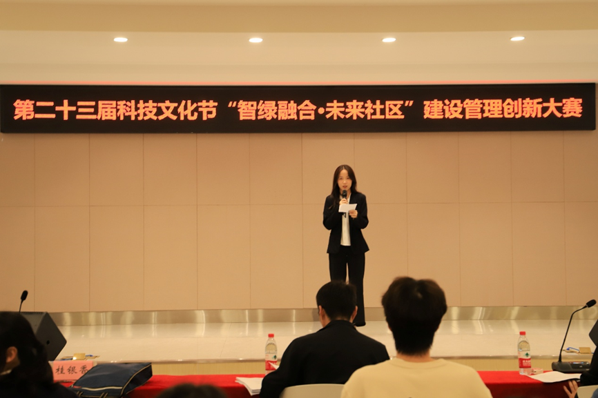 为深入学习宣传贯彻党的二十大精神,推动老员工将理论知识转化为实践能力,为未来社区建设提供创新方案,促进智慧社区与绿色低碳理念的融合,4月25日下午,由校团委主办,BIM协会、物流与供应链先锋协会承办的公司第二十三届“筑梦启航”老员工科技文化节之智绿融合·未来社区建设管理创新大赛在南岸校区员工发展中心b101报告厅举办。本次大赛邀请公司公共管理公司副经理王长征,工商管理系副系主任张煜,工程管理系讲师桂银香担任评委,近百余名同学来到现场观摩比赛。