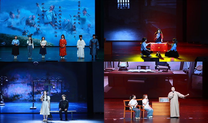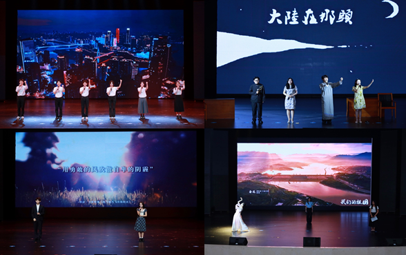 决赛现场,入围的八支员工队伍以经典著作为素材,通过主题演讲、情景演绎、文艺话剧等表演形式串联百年思想精粹。活动以《重庆开埠史》(分享人:杨浚杰、陈梓伊、陈新燃、张峻豪、鲍祥瑞、王一朵)的历史回响开篇,展现长江汽笛唤醒山城开埠的觉醒历程;《洛夫诗集》/《余光中诗集》(分享人:张佳瑞、陈毅、余粮仪、张覃沥文)通过诗性语言探索生命与时代的深层对话,诠释中华儿女的精神坚守与诗意栖居;《你当像鸟飞往你的山》(分享人:杜安淇、张金瑞)演绎知识如何重塑命运的轨迹,诠释觉醒的力量;《故乡》/《乡土中国》(分享人:陈艺姝、喻婧、易娇叶)聚焦乡土伦理,勾勒中华民族精神的文化根系;《全唐诗》(分享人:张靖晨、韩秉妤、余虹颖、朱俊霖、韩金龙、钟奉禥)以盛世诗韵回响千年文脉,激扬文化自信;《红岩》(分享人:周安俊、戚盛玺、杨旭、李静怡、王孙兵、王建康、牟诗佳、杨德城、洪昌奇、王欣妍)再现革命者铁骨铮铮,江姐绣红旗的场景点燃信仰之光;《我暗恋的桃花源》(分享人:赵翊彤、蒋诺男、徐志科)交织‘暗恋’的深情守候与‘桃花源’的理想追寻,展现当代青年对精神家园的求索,诠释在不完美中坚守美好的生命智慧。《共产党宣言》(分享人:李明远、程启航、谢乾坤、伍燕玲、熊亚兰、漆国香)以真理火炬照亮初心使命。舞台上,青年学子以多元形式重构经典:历史情景剧再现江城开埠的激荡岁月,诗诵光影交织剖析现代生存困境,双人独白演绎教育救赎的震撼力量,诗词吟唱唤醒盛唐气象的文化基因……八部作品层层递进,在声画交织中完成“历史镜鉴 — 文化传承 — 使命担当”的价值传递。比赛全程激情澎湃、高潮迭起,现场掌声不断。