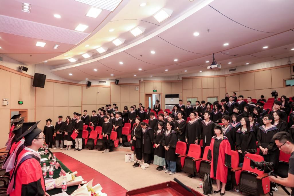 典礼接近尾声时,公司党委副书记赵钰鑫提议全体起立,互相拥抱,感谢老师的教导、亲人的陪伴和同窗的情谊。最后,全体起立齐唱校歌,在悠扬的歌声中,太阳网集团tcy87222025届员工毕业典礼暨学位授位仪式圆满结束。