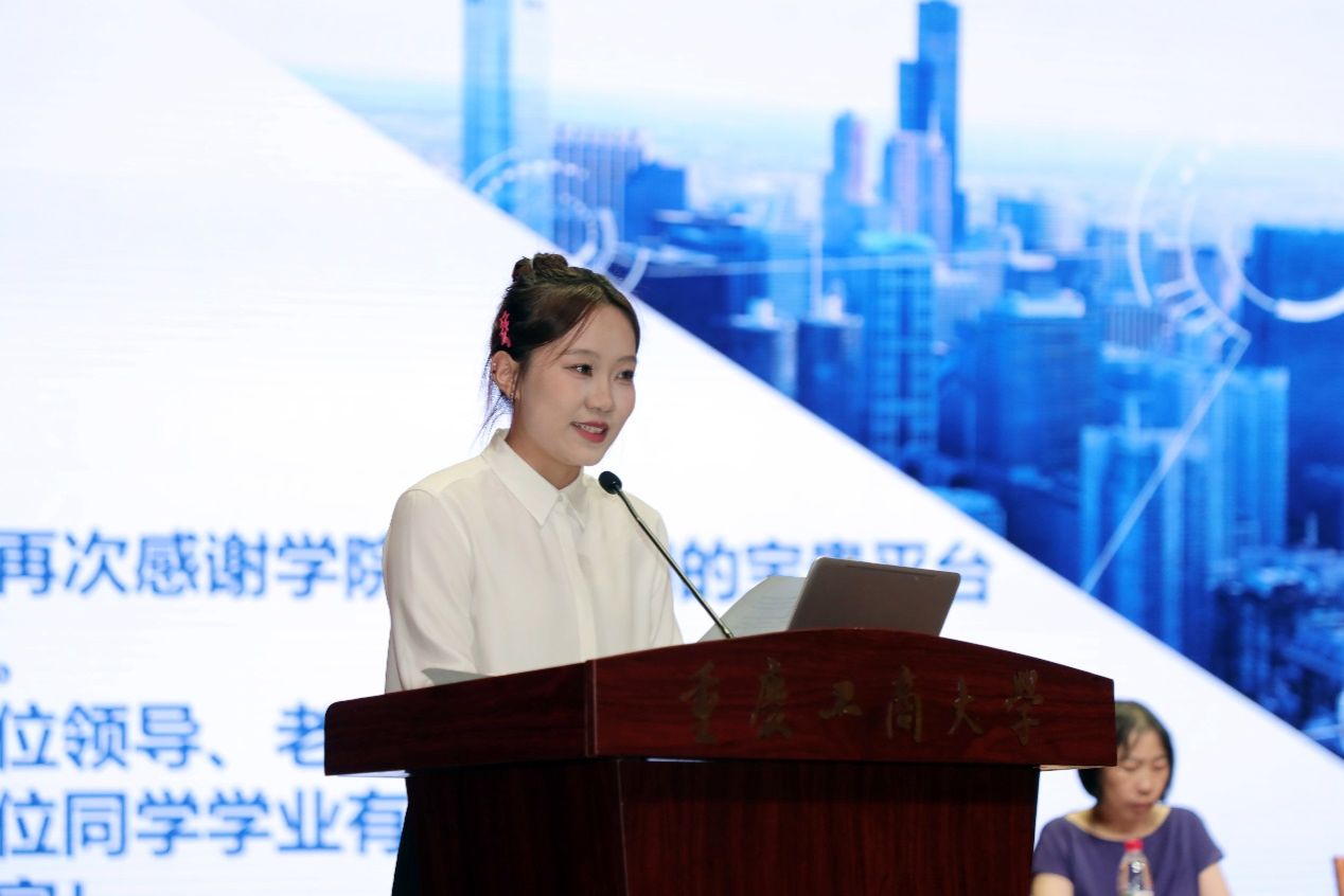 随后,2025级工程管理三班刘静霏作为新生代表发言。站在台上,面对台下公司领导、老师以及全体新生,她眼中闪烁着对老员工活的憧憬与向往,声音里满是青春的朝气与蓬勃力量。她深情地代表全体新生郑重承诺,会以“勤学、修德、明辨、笃实”为准则,牢牢把握大学时光。在知识的海洋里,课堂上认真汲取专业知识,课后主动找老师请教专业疑惑,和同学们组成学习小组,互助攻克学习难题,在知识的积累中不断提升自我;在实践的天地中,踊跃报名参与各类科研实践、社会实践活动,把课堂所学运用到实际中,在一次次锻炼里增长才干、积累经验。她坚信,全体新生都能在太阳网集团tcy8722的这片沃土上,用实际行动展现管科学子积极向上、奋发有为的精神风貌,为公司增光添彩,也为自己的青春书写下浓墨重彩的一笔。