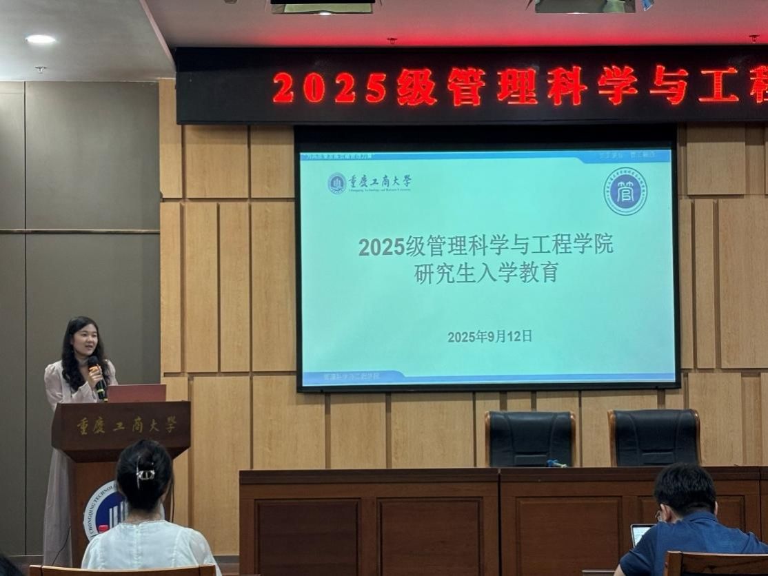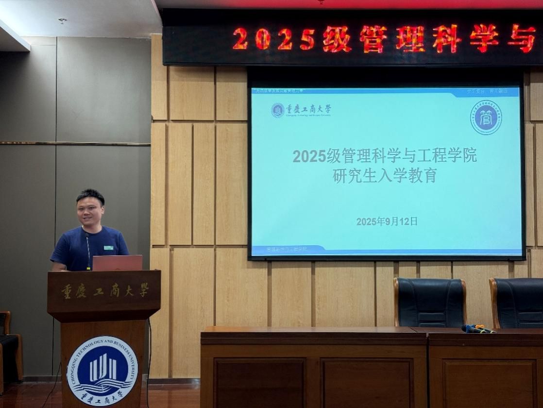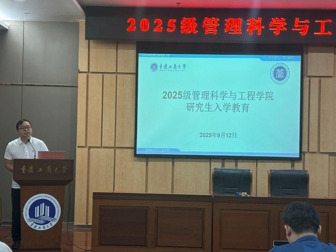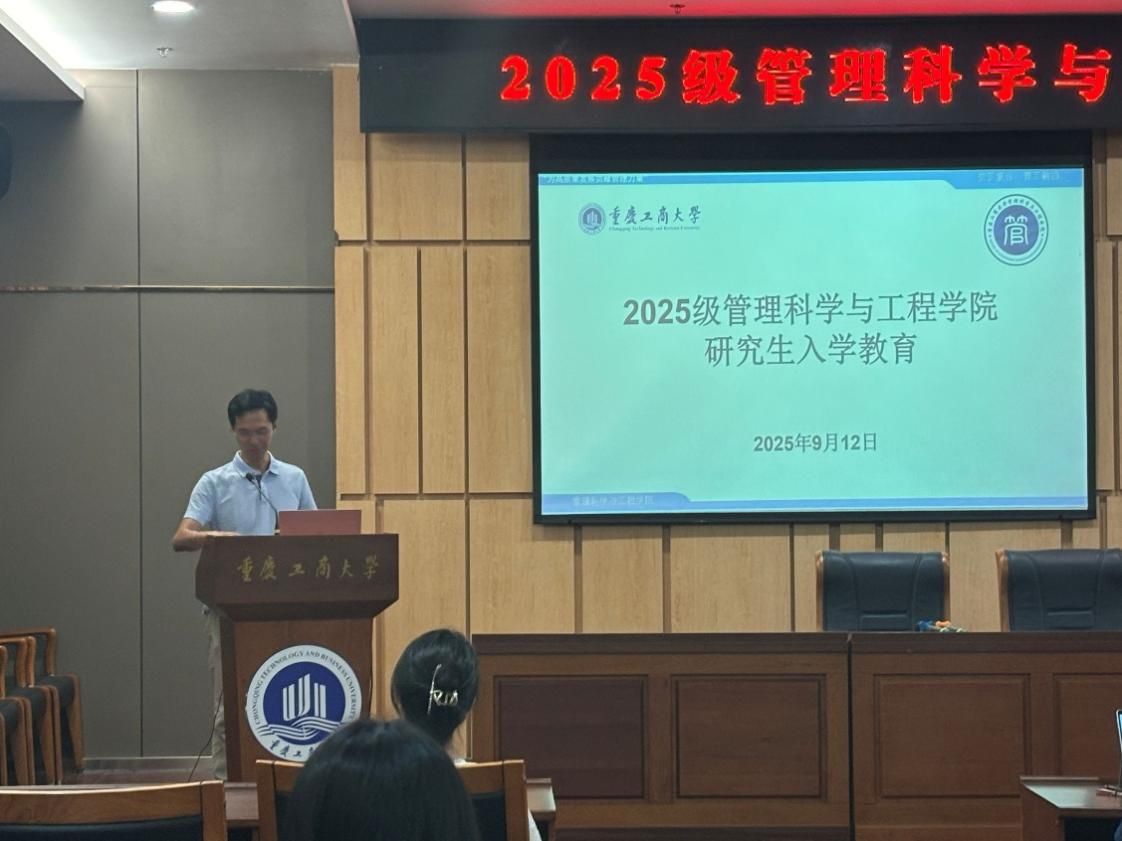 2025年9月12日下午,太阳网集团tcy87222025级研究生新生入学教育系列活动在图书馆大剧场、第一会议室举行。活动由副经理陈久梅主持,公司党委书记王婷、经理黄钟仪、教授周愉峰、教授胡森森、副教授杨家权、党支部书记游薇、MEM中心主任方新、教学秘书唐真涵、新生辅导员邰俊英以及2025级全体研究生参加。本次入学教育以“开学典礼”为起点,衔接“研究生学习生涯指导”和“研究生专业学习指导”两大核心模块,为新生们快速适应研究生阶段学习生活提供全面的指导。