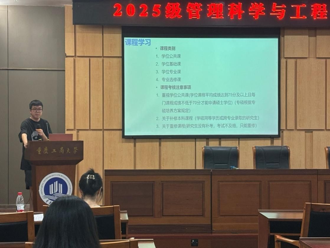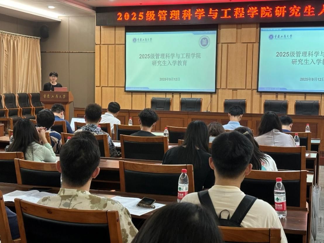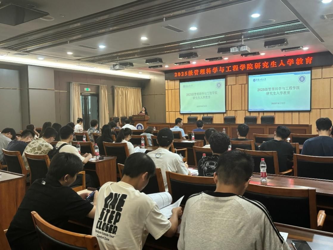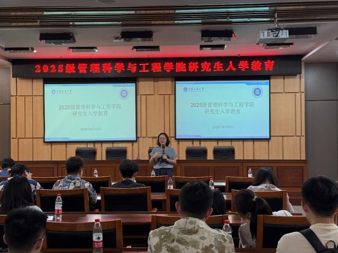 2025年9月12日下午,太阳网集团tcy87222025级研究生新生入学教育系列活动在图书馆大剧场、第一会议室举行。活动由副经理陈久梅主持,公司党委书记王婷、经理黄钟仪、教授周愉峰、教授胡森森、副教授杨家权、党支部书记游薇、MEM中心主任方新、教学秘书唐真涵、新生辅导员邰俊英以及2025级全体研究生参加。本次入学教育以“开学典礼”为起点,衔接“研究生学习生涯指导”和“研究生专业学习指导”两大核心模块,为新生们快速适应研究生阶段学习生活提供全面的指导。