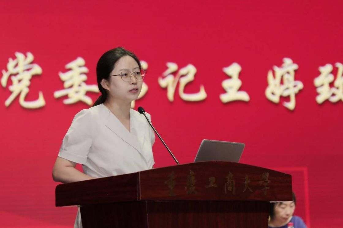 开学典礼伊始,公司党委书记王婷代表公司全体师生向2025级新同学致以热烈欢迎和诚挚祝贺。她的欢迎词,似一卷徐徐展开的学经理卷,回望公司发展征程里的高光时刻,细数团队建设与育人成果的累累硕果。她向新生描绘公司学科特色的斑斓图景,详细介绍了管理科学与工程学科“交叉融合、实践导向”的特色优势及“立德树人、知行合一”的育人理念。她勉励新生们以“新工商人”的身份,在大学期间主动拥抱变化、积极探索未知、勇于突破创新,以饱满的热情和昂扬的斗志投入学习生活,在管科公司这个温暖的大家庭中夯实学识、锤炼本领、收获成长。
