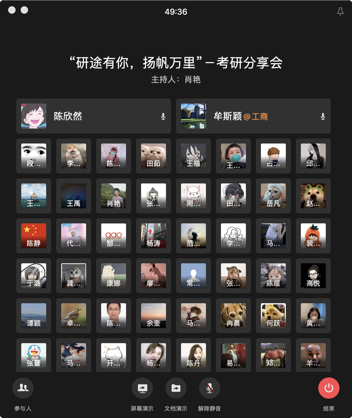 在接下来的答疑环节,牟斯颖和王小苑学姐作为主要答疑嘉宾,认真地解答了同学们的提问,加深了同学们对考研的理解。答疑环节的最后,咸学长建议考研的同学高度重视院校选取,多花时间去思考未来的发展走向。