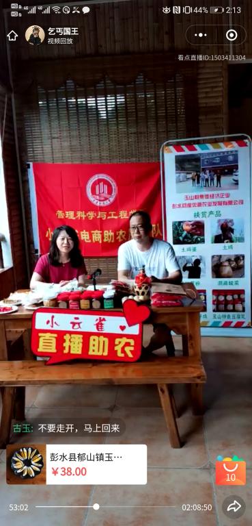 调研结束后,公司党委书记邓德敏和经理黄钟仪指导员工开展电商直播助农活动,并亲自上场为玉山村农产品进行宣传。