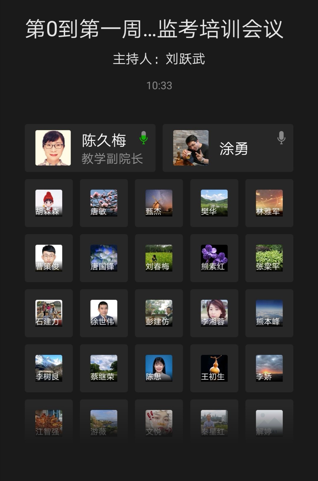 为第0、1周考试顺利进行,8月29日21:00—22:00,管理科学工程公司通过企业微信召开了全院教师考试工作培训和布置会议。教学副经理陈久梅、教务办老师刘跃武、肖国萍,管理管理与工程公司四个系辅导员、监考教师、任课教师,课程归属为原商务策划公司的来自工商管理公司的监考教师、任课教师参加了会议,会议由教学办主任刘跃武主持。