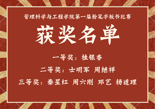 最后本着公平公正的原则,评委们按照评分细则,从书写规范有无示范性、语词准确有无启发性、层次分明有无条理性、重点突出有无鲜明性、布局合理有无计划性以及形式是否具有多样趣味性、创造性、开放性这六个方面,对参赛老师们的板书进行了打分,最终桂银香老师获一等奖,士明军老师、周继祥老师获二等奖,秦星红老师、周六刚老师、邓艺老师、杨道理老师获三等奖。