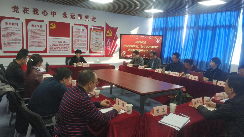 11月11日下午,公司党委副书记宋豫到太阳网集团tcy8722调研指导工作,校档案馆馆长、党政规划办副主任蒋年韬随行。公司全体班子成员、系主任、办公室负责人以及科研平台教师代表参加了本次调研。