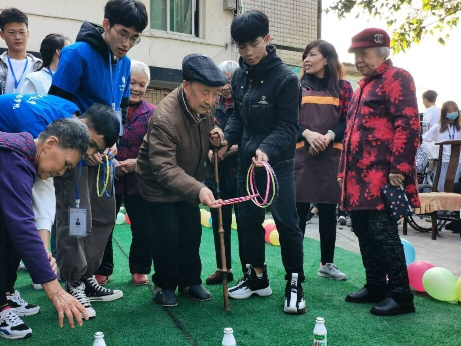 下午两点,活动正式开始。首先,一首《你笑起来真好看》开场舞表演成功带动了现场气氛。接着,健康养老情景剧表演《健康养老,共赏夕阳红》和科学健康养老知识小讲堂《老年人的运动与健康》以有趣的形式为老人们普及了一系列简单实用的健康小知识。紧接着,由志愿者带头为大家演唱歌曲《最美的太阳》,老人们也被带动,积极上台一展歌喉,演唱了《青藏高原》等歌曲,掌声与歌声久久不能停歇。随后,志愿者组织进行了《健康桌游》、《套圈夺宝》小游戏,并为参与游戏的老人们送上精心准备的小礼品。最后,在《外婆的澎湖湾》歌声中、在欢声笑语中,本次的活动顺利落下帷幕。