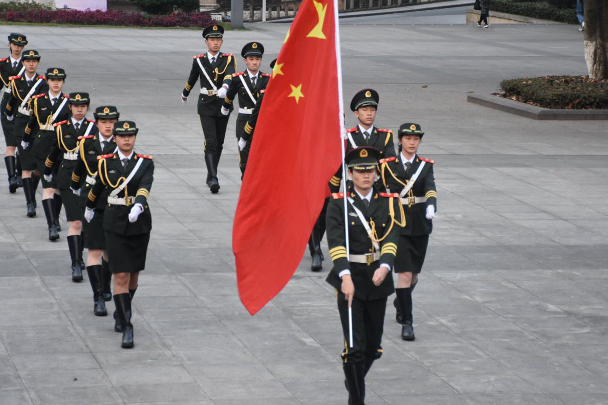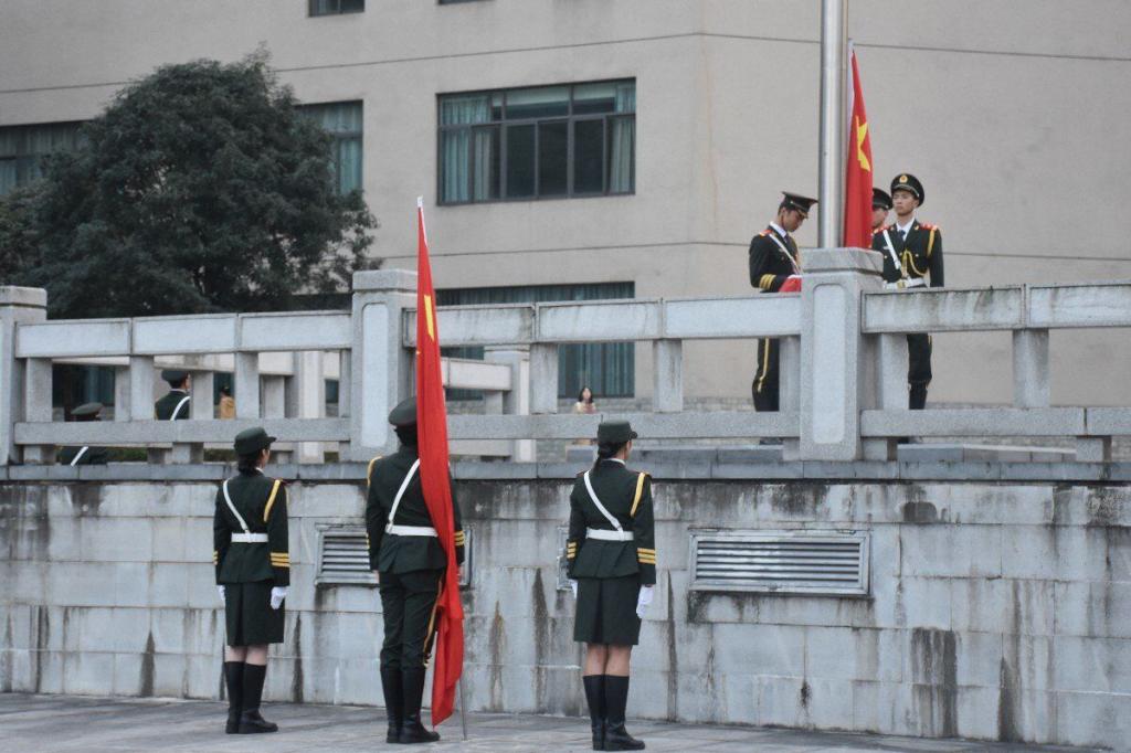 七点三十分,升旗仪式准时开始。迎着朝阳,公司国旗护卫队成员迈着矫健的步伐护送五星红旗走上升旗台,升旗手振臂一挥,鲜艳的五星红旗在雄壮国歌声中冉冉升起,全体师生行注目礼。
