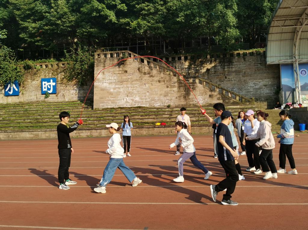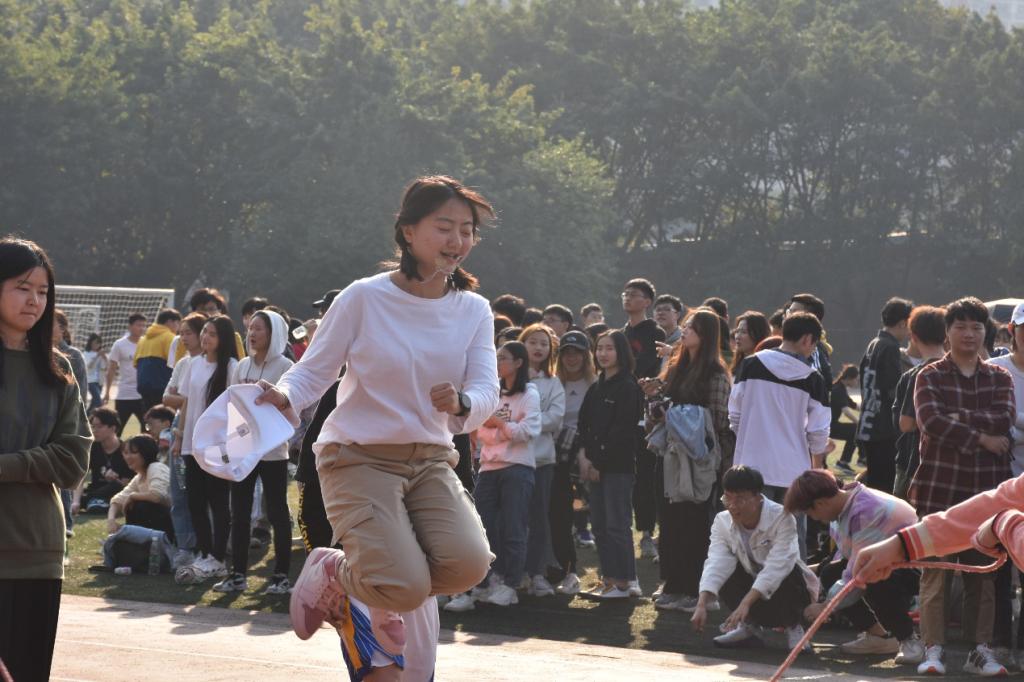 跳绳比赛于15:00准时开始,各班依次上场,两名同学为挥绳运动员,其余运动员依次绕“8”字穿越跳绳,每名运动员穿越跳绳一次即离开,直到2分钟结束,计成功跳绳次数并以此排名。赛场上,同学们有序接力,偶尔的失误也能沉着应对,快速调整节奏,各班同学团结一致,奋力为班级争夺荣誉。