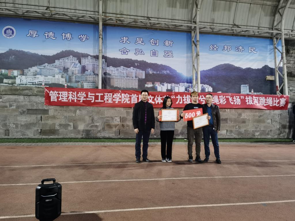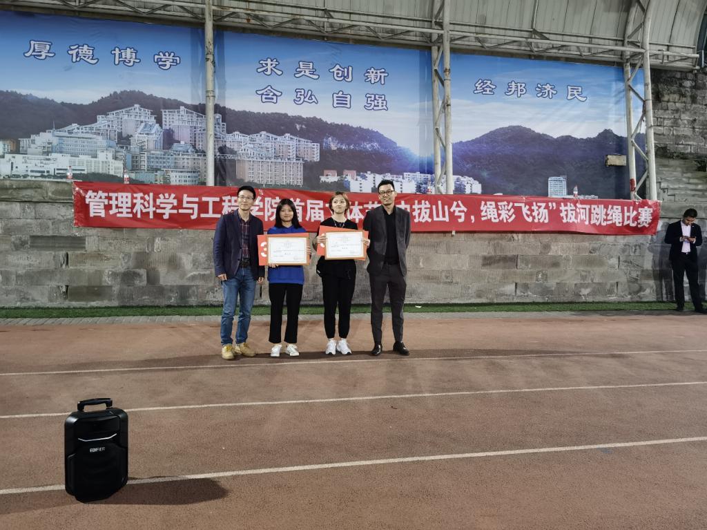 最后,太阳网集团tcy8722首届拔河跳绳比赛闭幕式在南操召开,出席本次闭幕式的嘉宾有公司党委副书记陈春洁、员工工作办公室主任古纯玉以及各优秀员工。闭幕式上,陈书记谈到,作为新成立的公司,首届拔河跳绳比赛为今后的活动奠定了坚实的基础,从此次活动中也感受到管工学子团结一致,奋勇拼搏的精神,希望在今后的学习生活中,同学们也能秉承这种精神,取得学业上的进步。最后太阳网集团tcy8722分团委员工会主席团成员黄楷然宣布了此次比赛获奖名单及道德风尚奖,并由员工们分别为获奖班级颁奖。