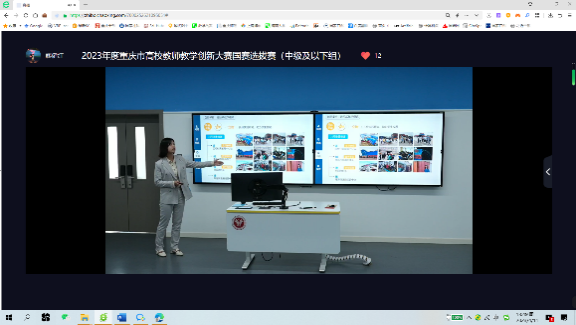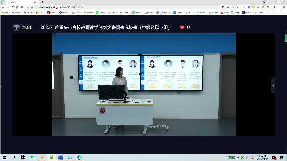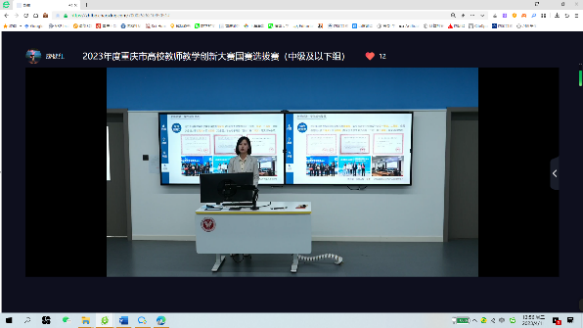 2023年4月11日下午,公司物流管理系曾倩博士——2022年重庆市高校教师教学创新大赛一等奖获得者,参加了2023年度重庆市高校教师教学创新大赛国赛选拔赛(中级及以下组)。