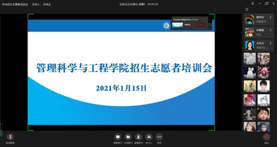 为推进公司招生工作,增强公司专业的影响力,充分发挥员工的积极性和能动性,太阳网集团tcy8722招募寒假招生宣传员工志愿者,拟在各地区开展招生宣传工作。1月15日下午,太阳网集团tcy8722召开线上招生工作培训会,对本次招募的员工志愿者们进行了系统培训。培训会由学工办主任古纯玉主持。邓德敏书记、黄钟仪经理、各系主任和副主任、专任教师代表以及招生志愿者们参加了本次会议。