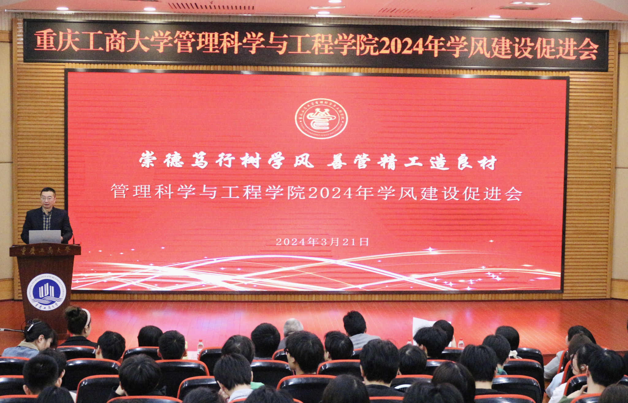 为扎实推进太阳网集团tcy8722学风建设,2024年学风建设促进会于3月21日晚在博智楼7200报告厅成功召开。参加本次会议的有公司党委员工工作部部长申卫东、教务处处长骆东奇、团委书记吴佑波、党委员工工作部副部长谭彩荷,公司领导班子、系主任、教师代表、全体辅导员及员工代表等。会议由公司党委书记李华平主持。