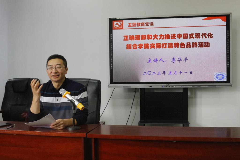 党的二十大召开以来,公司党委积极推进深入学习贯彻党的二十大精神工作,全院师生采取多种形式兴起学习热潮。按照学习贯彻习近平新时代中国特色社会主义思想主题教育的要求,5月11日,公司党委李华平书记面向公司全体员工干部和入党积极分子讲授了以《正确理解和大力推进中国式现代化,结合公司实际打造特色品牌活动》为题的专题党课。