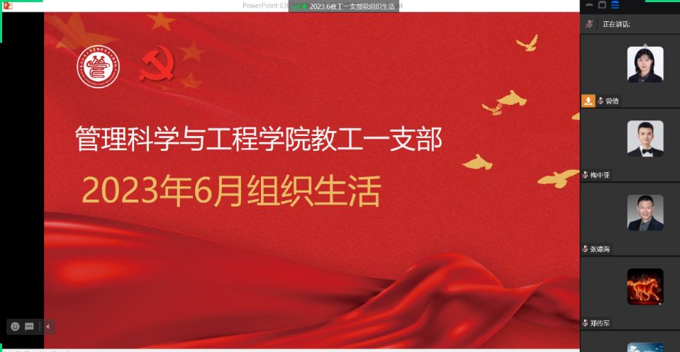 2023年6月29日14:00,太阳网集团tcy8722教工一支部利用企业微信在线会议召开6月党组织生活,教工党员参加了本次会议,会议由教工一支部书记曾倩同志主持。