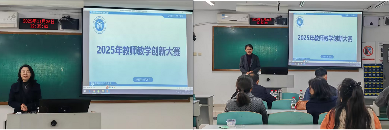 在比赛环节,来自不同专业的7位参赛教师依次登台,围绕课程设计、教学方法、信息化手段应用等方面进行创新汇报。