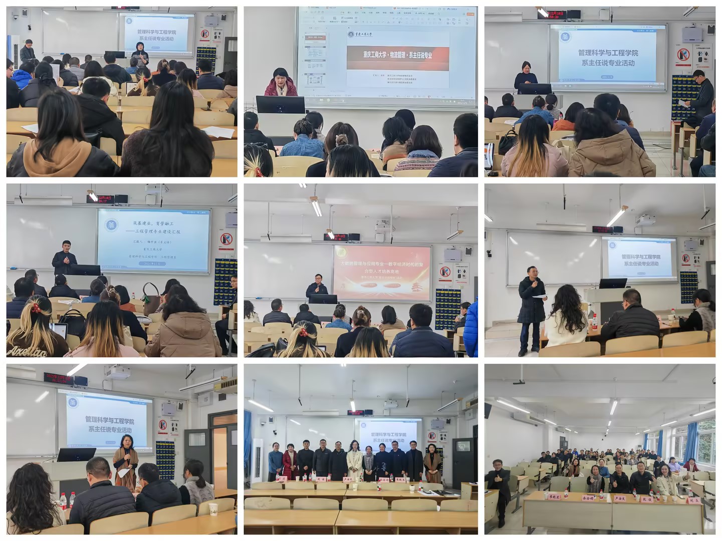 活动的核心环节是专业汇报与评审。物流管理、电子商务、工程管理、大数据管理与应用四个专业的系主任依次登台,围绕各自专业的定位与目标、特色与优势、建设成果、现存问题及未来改进方向 等核心内容进行了限时7分钟的精彩汇报。各位系主任准备充分,汇报内容数据详实、思路清晰,充分展示了各专业的建设底蕴与改革活力。